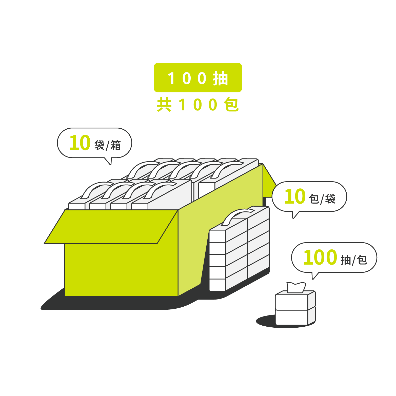 ◎ 單箱規格:100包/箱 ( 10串/箱、10包/串、100抽/包 )