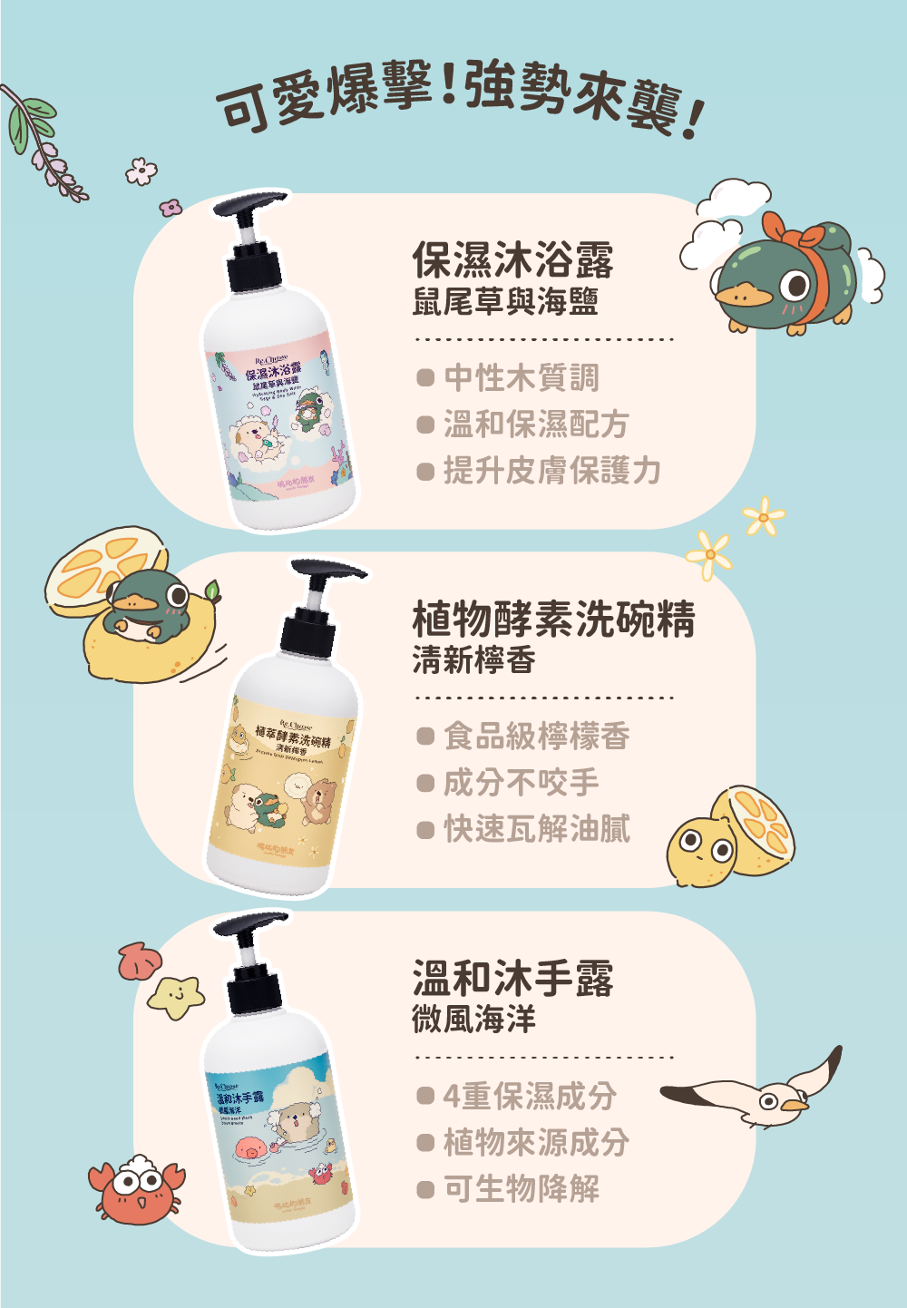 【嗚比的朋友聯名】清潔系列|沐手露・洗碗精・沐浴露|支持黑潮海洋公益